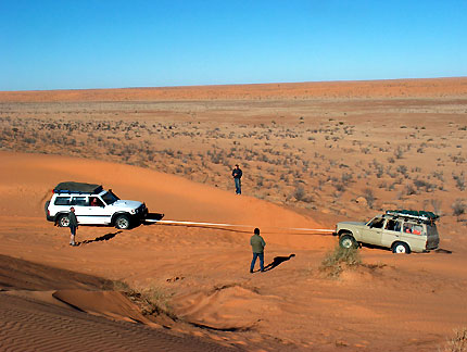 Mit dem Bergegurt kann dem Landcruiser in kurzer Zeit aus den Schwierigkeiten geholfen werden.