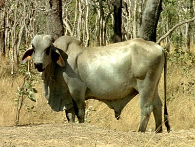 Ein Brahman-Bulle der sich etwas abseits der Herde rumtreibt.