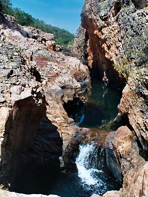 Der Barramundie Creek fliesst über unzählige Kaskaden von Pool zu Pool