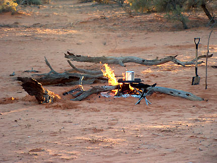 Die ersten Dinge am Morgen: Feuer machen und Wasser für den Kaffee oder Tee kochen.