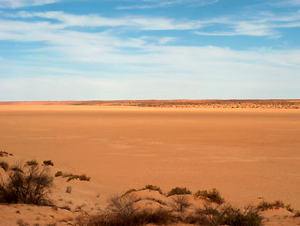 Riesige ausgetrocknete Salzseen bilden den Kontrast zu den Sanddünen der Simpson Desert