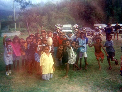 Grosser Bahnhof bei unserer Ankunft in Wujal Wujal nach einem Tag auf dem Creb Track zwischen Daintree und dem Cape Tribulation Natinalpark. Im Hintergrund die Filmcrew von Troy Dann.