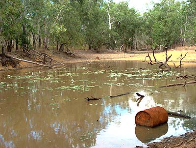 Hinter der Outstation liegt diese Kloake, die früher wohl als Viehtränke gedient hat. Mit den Seerosen gibt das ganze sogar ein idyllisches Bild ab.