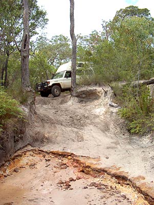 Die Einfahrt zum Cannibal Creek - eng und extrem ausgewaschen.