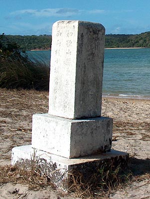 Somerset ist reich an Geschichte und am Strand sind verschiedene Gedenkstätten zu finden - hier ein Gedenkstein für den chinesischen Diener von Frank Jardine.