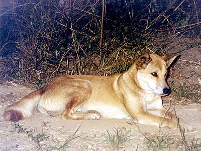 Da der Dingo von Touristen sicher gelegentlich gefüttert wird oder sich von deren Abfall ernährt, war er eigentlich ganz zutraulich. Aber Vorsicht - Dingos ernähren sich vorwiegend von Aas und ein Biss kann eine böse Blutvergiftung zur Folge haben.