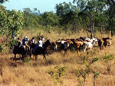 Mustering auf Mt Mulligan Station. Die zuschauenden Backpacker waren wohl grösstenteils enttäuscht. Weil "Action" ist hier überhaupt nicht angesagt - die Rinder werden vom Hubschrauber zusammengetrieben ...