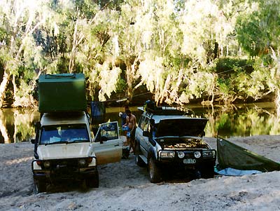 Bushcamp mit Brett & Chrige am Mitchell River. Der Aussie natürlich mit Swag und Mosiktonetz unter freiem Himmel.
