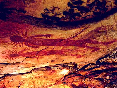 Neben diesen zwei Mirriwung-Figuren sind bei dieser Kunststätte rund 2500 Malereien und Ritzzeichnungen zu finden, die teilweise bis zu 5000 Jahre alt sind.