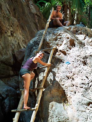 Im zweiten Teil des Walks stehen Leitern, um die grossen Felsbrocken überqueren zu können.