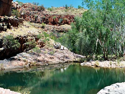 Der Rest Pool in der Amalia Gorge. Im Wasser wimmelt es von Black Breams, die bis zu 40 cm gross sind. Von der Klippe nur den Angelhacken hinhalten und zum Nachtessen gibt es prima Fisch auf dem Grill.