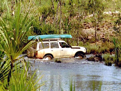Auf der Mitchell Plateau Road ist das erste Hindernis der King Edward River. Auch in der Trockenzeit eine recht tiefe und ruppige Durchfahrt.