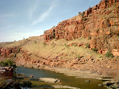Sandbänken am Fitzroy River bieten Gelegenheit zum faul rumliegen und eine Abkühlung im Wasser zu geniessen - "Saltie-free".