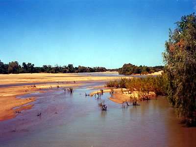 Flinders River, kurz nach Normanton. Hier campten Burke und Wills 1861, als sie den Kontinent von Melbourne aus Richtung Norden durchquerten ... sie kehrten nie zurück.