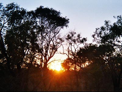 Sonnenuntergang bei der Kambolgie Bush Camp Area