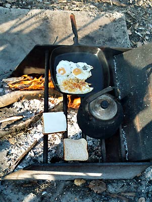 Kaffee, Spiegelei und Tostbrot zum Morgenessen