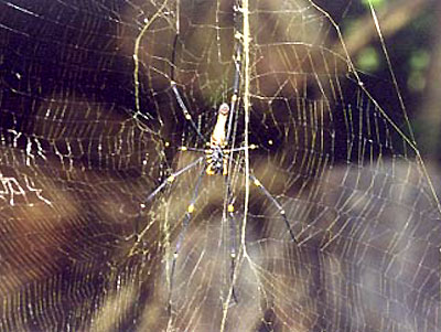 In der Dunkelheit leuchten die gelben Punkte an den Beinen der Spinne