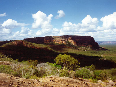 Vom Nawurlandja Rock sind die westlichen Ausläufer des Nourlangie Rock zu sehen